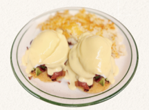 2 Eggs scrambled with Cheddar Cheese, Green Chili & Choice of Ham, Bacon, Sausage, Turkey or Linguica